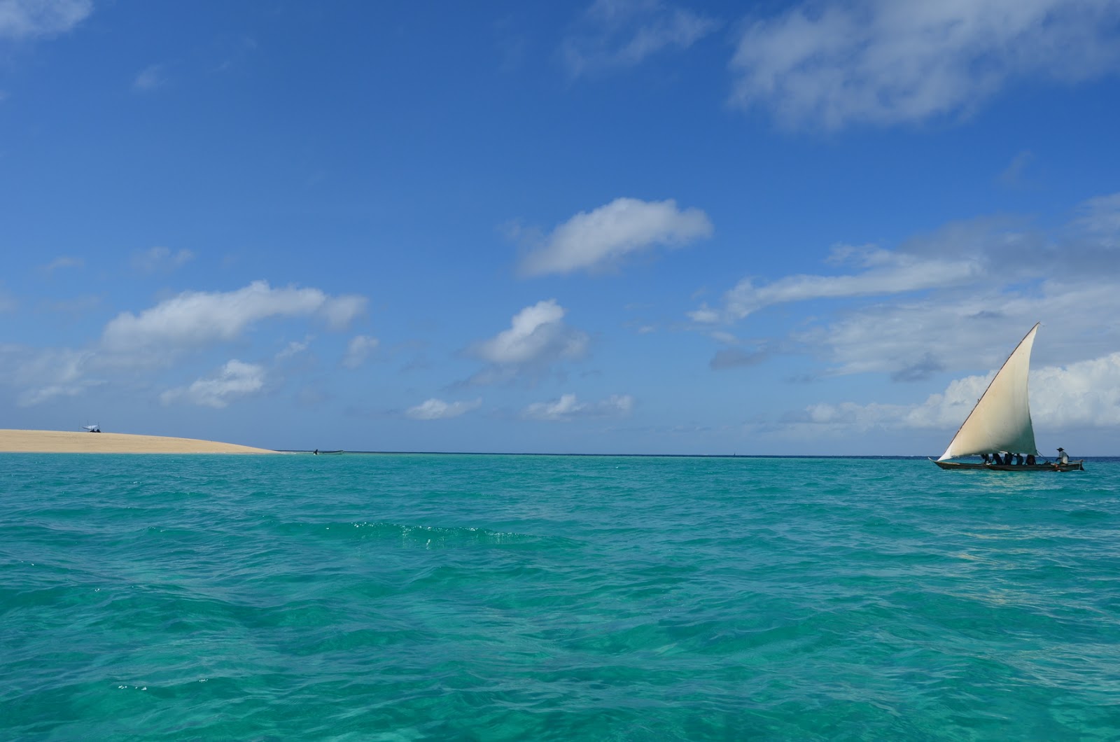 debacle in Kilombero River. We made our way out to the ocean, enjoying the cool sea breeze and passing local dhows with fishermen.